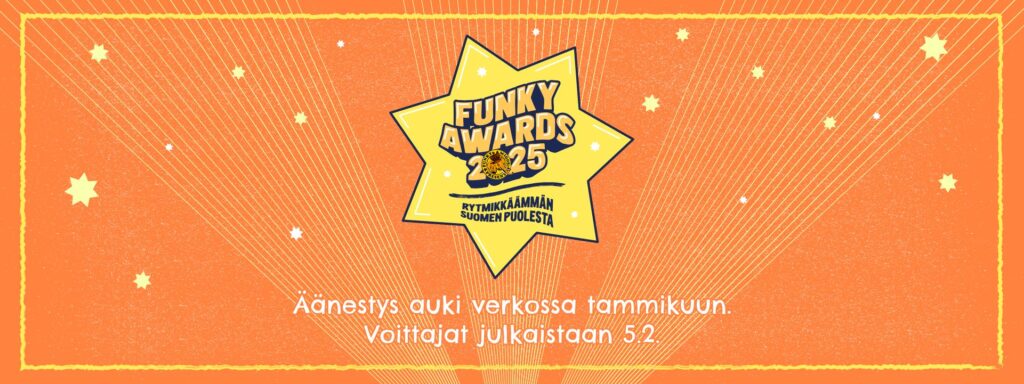 Yksi hieno matka aurinkomme ympäri on ohi taas ja uusi aluillaan. On hyvä hetki vilkaista taaksepäin ja kerätä vuoden 2025 mehevin kotimainen rytmimusiikki talteen. Funky Awards palaa juhlistamaan kuluneen vuoden hienoimpia artisteja ja musiikkia ja etsii jälleen leikkimielisesti parhaista parhaat yleisö- ja tuomariäänestyksen voimin.
